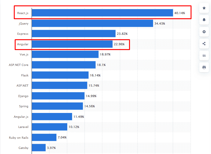As of 2021, React and Angular are one of the most preferred frameworks by developers worldwide.