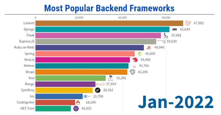 According to statistics and data, you can see the popular backend frameworks up to the first month of 2022.