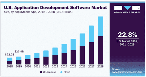 Build software vs buy software: which one to choose for a startup? It is a common question for startup founders. They find it quite challenging to decide between both options. The booming demand for different software applications to boost and streamline business activities using modern technology is expected to support market growth. The app development software market size was estimated at USD 131.4 billion in 2020 and is anticipated to grow at a CAGR of 24.3% from 2021- 2028.