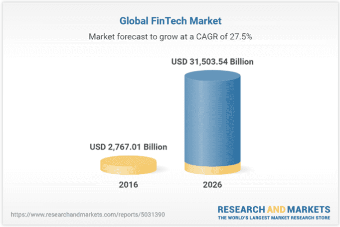 The Global FinTech Market was worth 7301.78 billion USD in 2020. It is anticipated to rise at a 26.87% CAGR during the estimated period.