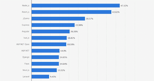 The tech giant Facebook has developed and released ReactJS as an open-source framework for developing custom web applications and interactive UI/UX. Flexibility and simplicity are two major characteristics of ReactJS that have made this framework immensely popular worldwide. A Statista survey of the most popular web frameworks has revealed that ReactJS is in second position, with over 42 percent of developers using it.